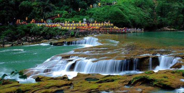 [p]安顺(车程约50分钟)-黄果树(车程约1.5小时)-花江峡谷大桥(车程约3..5小时)-都匀 [br] [/p] [p]07:00 早餐 [br] [/p] [p]07:30 出发乘车前往黄果树 [br] [/p] [p]08:30游览国家AAAAA级风景区【黄果树景区】(游玩时间约4-5小时,必乘环保车50元/人、保险10元/人)。游览瀑布群最宽的【陡坡塘瀑布】(游玩时间约0.5小时),你一眼便能识别这是86版《西游记》主题曲中的场面,那充满童年回忆的音乐,立马便在耳边响起。游览出名始于徐霞客,号称亚洲第一大瀑布的【黄果树大瀑布】(游玩时间约2小时)(非必销黄果树往返大扶梯50元/人),黄果树大瀑布宽101米,高77.8米,未见其身,先闻其声,离瀑布还有几十米,便能听见那咆哮的声响。山路一转,瀑布从悬壁之巅奔腾而出,直落九天,跌宕在翠谷中,涌起飞卷的浪花,抛起层层水雾,漫延几十米,以排山倒海之势铺面而来,小心湿身。接水便是接财,布后有一长达134米的水帘洞拦腰横穿瀑布而过,去洞内接点瀑布之水,可以把财运带回家。黄果树瀑布也是世界上唯一可以从上、下、前、后、左、右六个方位观赏的瀑布。游览有水上石林、天然盆景之称的【天星桥上半段】(游玩时间约0.5小时),巨大的岩石随意的散落在浅水的河滩上,从天上俯瞰,宛如漫天繁星。穿行在石缝间,待阳光穿过这片石林,享受斑驳光影的艺术。地上的数生石,每一块上都雕刻着一个日期,每个来到天星桥的游客,都会开心的在这里找到属于自己生日的那块石头。 [br] [/p] [p]12:00 中餐 黄果树富贵花开宴(餐厅:黄果树瀑缘食府) [br] [/p] [p]参考菜单:清蒸瀑布巴沙鱼,罗萝卜排骨,腌菜扣肉,老妈红烧猪脚,龙须菜腊肉,狗地芽鸡蛋饼,过桥豆腐,手工豆芽炒肉,威宁土豆丝,蒜泥时蔬,土鸡三鲜汤 [br] [/p] [p]13:30 乘车前往花江峡谷大桥观景服务区 [br] [/p] [p]14:50 游览【花江峡谷大桥观景服务区】(此景点打卡拍照时间1-1.5小时,不上桥!),远观花江峡谷大桥,是新晋世界第一高桥(主桥跨径和高度世界第一,桥面距水面垂直高度625米,全长2890米)。其桥面距水面625米的高度,行驶在桥上,犹如在云端穿梭。花江峡谷特大桥是一项震撼人心的工程奇迹,彰显了中国在超大型桥梁建设领域的顶尖技术水平,它将成为贵州高原上一道新的壮丽风景线,并将“世界桥梁博物馆”的美誉提升到一个新的高度。 [br] [/p] [p]16:00 乘车前往都匀 [br] [/p]19:30 入住酒店